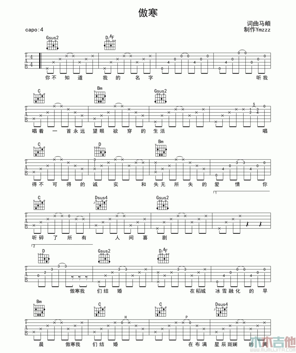傲寒 – 马頔 吉他谱